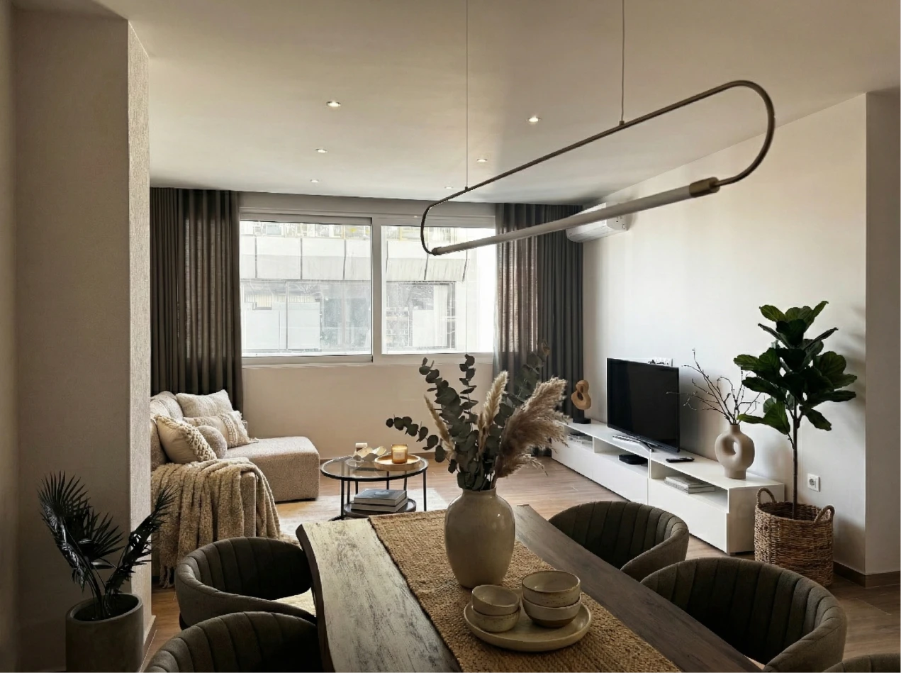 Bright 80 sq.m. residence near Piraeus Port, offering two bedrooms, bathroom & WC, and contemporary interiors in a calm yet central setting.